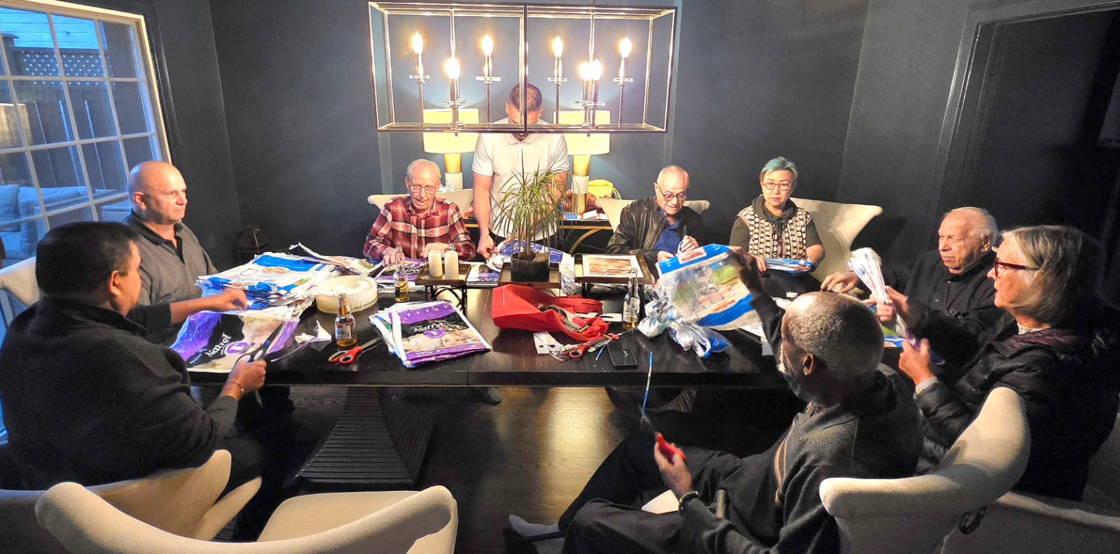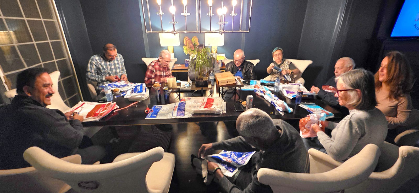 To turn plastic milk bags into mattresses, our Rotarians cut and loop them into strips, which are then woven on a frame to create durable sleeping mats. This community-led recycling effort helps provide waterproof and insulating mats for those experiencing homelessness or living in disaster zones. Thank you P.E Shawn Tahririha for hosting at his home.